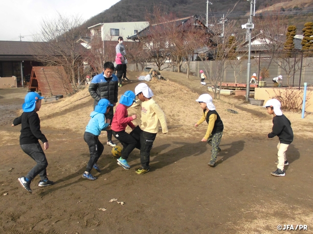 日本サッカー協会では、各都道府県のキッズ委員会を中心に「巡回指導」を各地で開催しています。