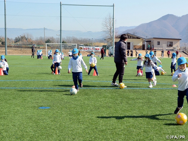日本サッカー協会では、各都道府県のキッズ委員会を中心に「巡回指導」を各地で開催しています。