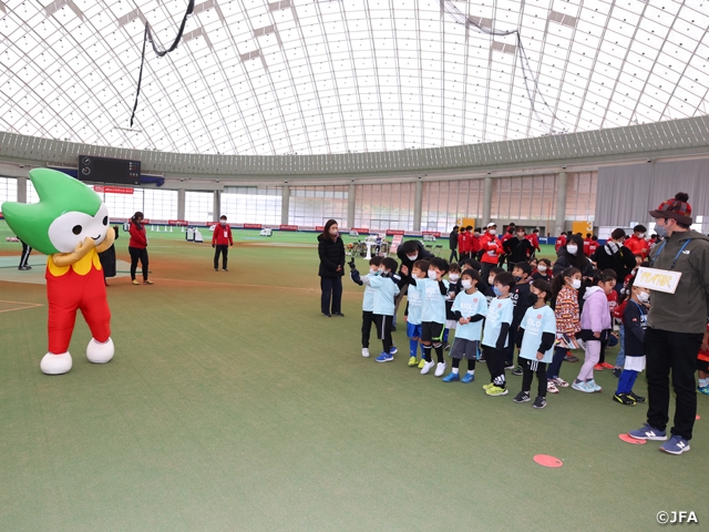 日本サッカー協会は12月18日(日)、6歳以下の未就学児を対象としたサッカーフェスティバル「JFAユニクロサッカーキッズ in 山口」を山口きらら博記念公園やまぐち富士商ドームで開催しました。