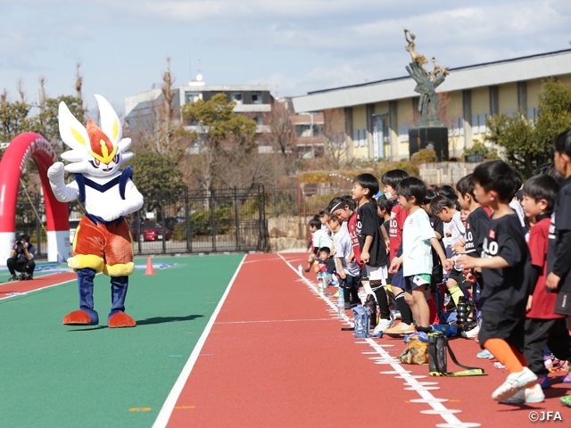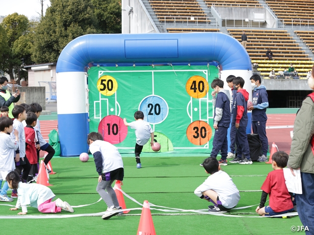 日本サッカー協会は3月5日(日)、6歳以下の未就学児を対象としたサッカーフェスティバル「JFAユニクロサッカーキッズin京都」をたけびしスタジアム京都で開催しました。京都での開催は2006年、2021年に続き3回目で、今回は739人のサッカーキッズが参加してくれました。