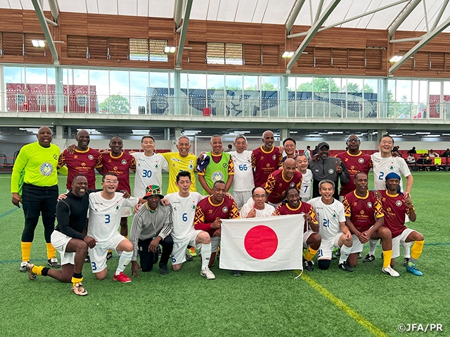 60歳以上の日本チームは初戦の韓国に1-0で勝利しましたが、その後の4試合を惜敗し、順位決定戦も0-1敗れ、1勝5敗で大会を終えました。しかし、優勝国のイングランド、準優勝のフランスにそれぞれ0-1と善戦するなど、その戦いぶりや立ち居振る舞いから“Most Sporting Team”というスポーツマンシップを最も体現したチームとして表彰されました。