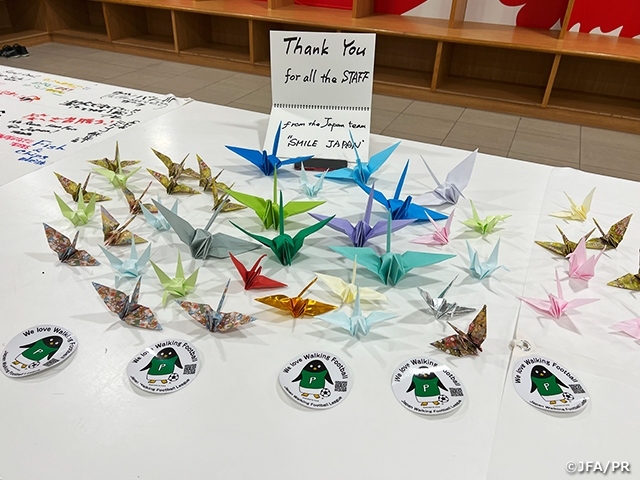 最後に会場を去る時には、サッカー日本代表が行っている折り紙とメッセージをロッカールームに置き、運営スタッフへの感謝の気持ちを表しました。