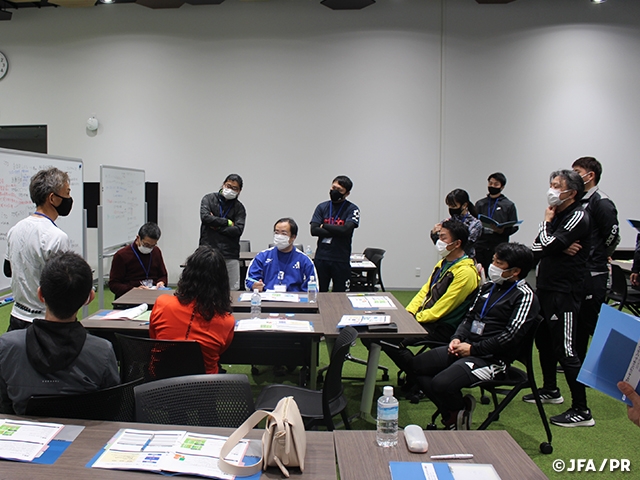 (グループワークについて)「サッカーが好き」という共通項がありながらも、いろいろな立場の方がいて、それぞれ自分が見たこともない事例や経験を持っていました。皆さんが既に、指導者やコーディネーターといった立場でスキルがあるので、短い時間の中で充実したワーキングができました。