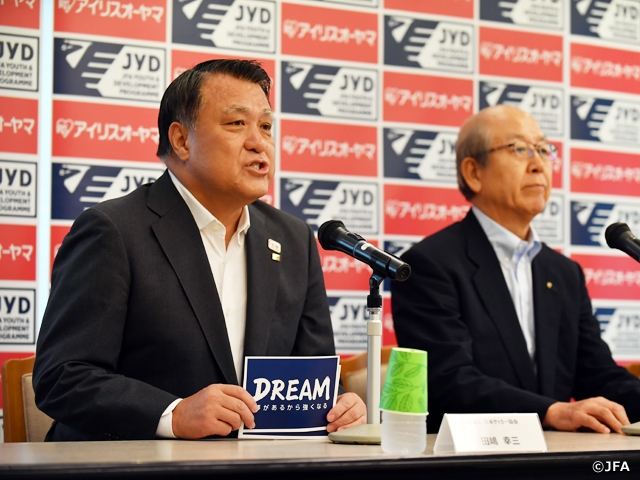 公益財団法人 日本サッカー協会(JFA)は、7月24日、アイリスオーヤマ株式会社と「JFA Youth & Development Programme(JYD)」パートナーシップを締結しました。同社には、JYDオフィシャルパートナーとして、JFAグリーンプロジェクトをはじめ、普及・育成年代からシニア世代まで幅広い事業をサポートいただくことになります。