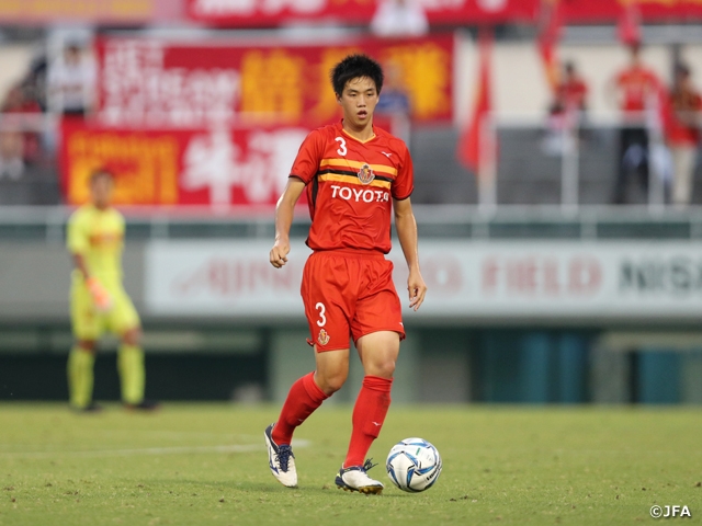 絶対に勝とう、と全員で声をかけ合って試合に臨みました。今年のチームとしてまず一番初めに、クラブユース・Jユース・高円宮杯 U-18サッカープレミアリーグで頂点に立つという目標をチームのみんなで決めました。今日はまずその1つ目を成し遂げられたので嬉しく思います。全員で1つの目標に向かっていくというのが本当に大きく、全員で取り組む中で1人1人がそれぞれ役割を担うことで、責任感をより一層持つことができたことが大きいと思います。前半は3-0でリードできましたが、ハーフタイムでは0-0の気持ちでやり直してしっかり戦っていこう、とみんな1人1人が声に出して後半に臨みました。暑さもあり後半は本当に苦しかったですが、これだけのサポーターが来てくださり、ベンチ外となった3年生たちも愛知県から駆けつけてくれていたので、その選手達の分もがんばらなければという思いで走っていました。みなさんの応援は本当に心強かったです。後半は苦しい展開が続きましたが、ここが自分たちの次への課題だと感じていました。リードしている時の後半の戦い方、試合の運び方は自分がリーダーシップを持ってやっていかなければいけないところだと思っています。これからのプレミアリーグでは、1試合1試合、自分たちの攻撃的なサッカーを積み重ね、相手を圧倒するということを続けていきたいと思います。そうすれば、自ずと結果はついてくると思ってがんばります。