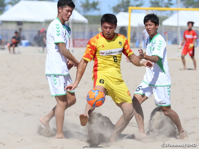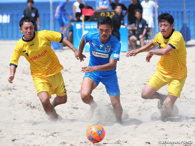 JFA第14回全日本ビーチサッカー大会が、9月6日(金)に鳥取市賀露みなと海水浴場で開幕しました。大会初日には、1次ラウンドの第1節と第2節が行われています。ベスト8進出を目指して、熱戦が繰り広げられました。