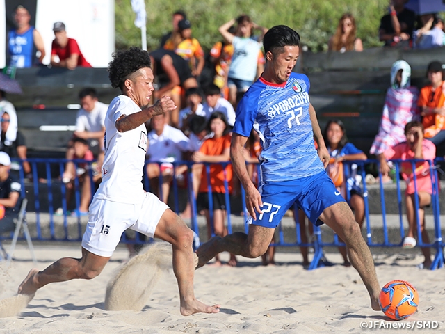 この結果、大会最終日に行われる準決勝の対戦カードは、ドルソーレとソーマプライアの九州対決、そして東京Vとレーヴェの関東対決となっています。そして前回大会と同じく、九州勢対関東勢の構図となる決勝戦は13時にキックオフを迎え、今年のビーチサッカー日本一のクラブが決します。