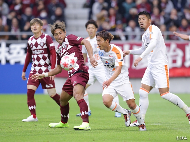 先制点は前半13分。ペナルティーエリア外からイニエスタ選手が左足で放った鋭いシュートはゴール右隅に決まりました。立ち上がりの清水の攻勢をしのいだ後の貴重なゴールで流れを引き寄せると、33分には左サイドから酒井高徳選手が上げたクロスを田中順也選手が右足で押し込み、追加点を奪いました。
