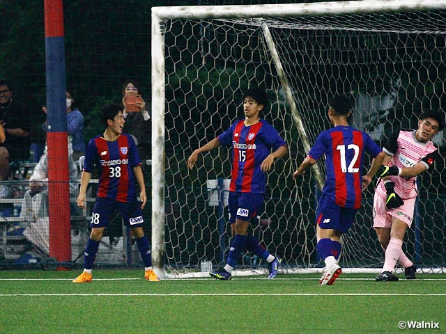 試合が動いたのは、「ショートカウンターが入るようになってきていた」(奥原監督)72分のことでした。ボールを奪っての速攻からMF松本愛己選手(#14)が左サイドを破ってクロスボールを送ると、これに合わせたのは交代出場のFW田口輝一選手(#15)でした。「本当に賢い選手なので、こちらが少し指示を出しただけで、本来の考えて動き出すプレーをしてくれるようになっていた」(奥原監督)というストライカーが見事に結果を出します。