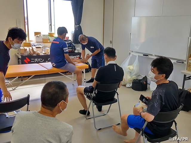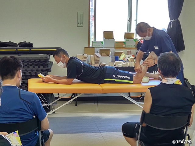 6月25日(土)~27日(月)、千葉県の市原スポレクパークで行われたJFA 第21回全日本O-50サッカー大会に、JFA Youth & Development Programme (JYD) オフィシャルパートナーのニチバンがテーピングブースを出展し、出場選手たちへのメディカルサポートを行いました。