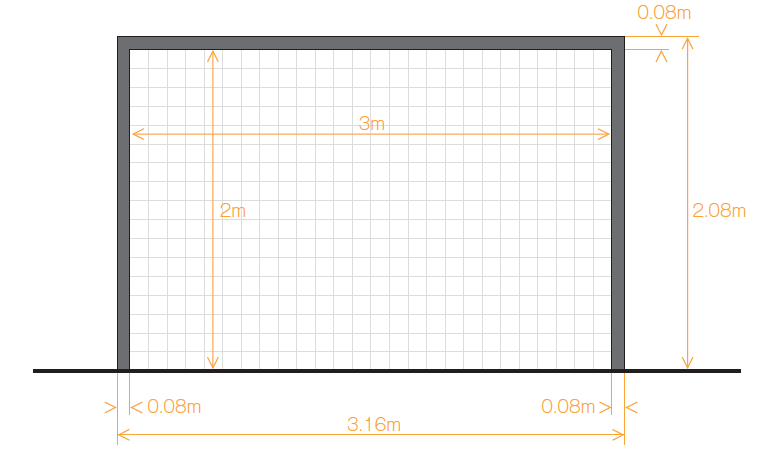 両ポストの間隔(内測)は3mで、クロスバーの下端からピッチ面までの長さは2mである。