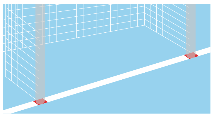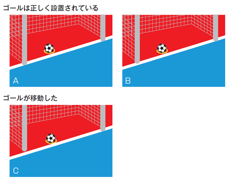 主審・第2審判が、確実に動いたゴールを正しい位置に戻せるように、ゴールポストの下に追加マークを描いてもよい。
