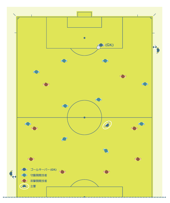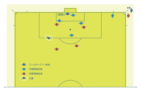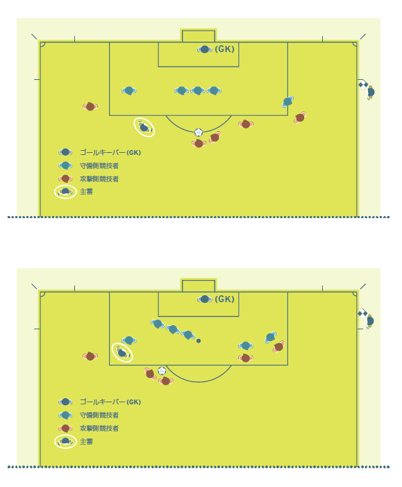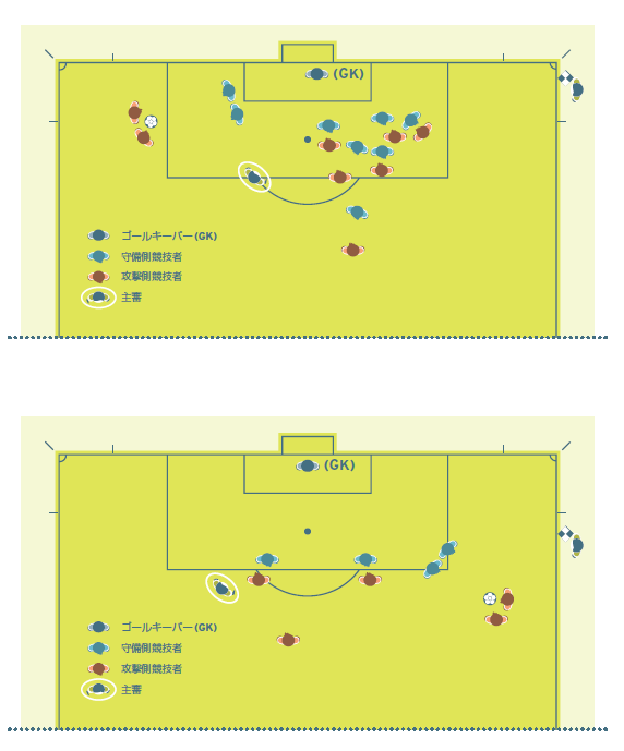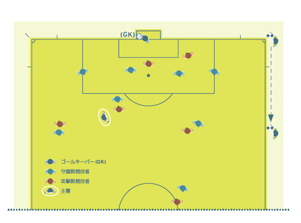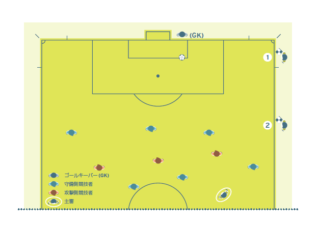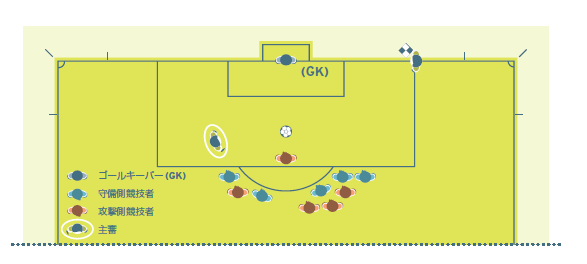 ・副審から近い場合-ゴールキックかコーナーキックかを示す。