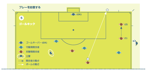 ・プレーを停止した場合、再開は競技規則に従って(フリーキックやペナルティーキックなどで)行われなければならない。