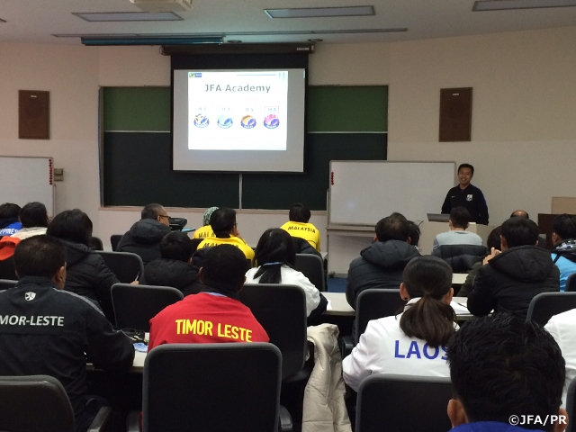午前中は各国の役員及び指導者がJFAアカデミー福島を訪問し、同アカデミーの沖山雅彦チーフコーチ(女子担当)よりJFAアカデミーの取り組みについてのレクチャーを受けました。終了後は女子の育成について質疑応答が行われました。