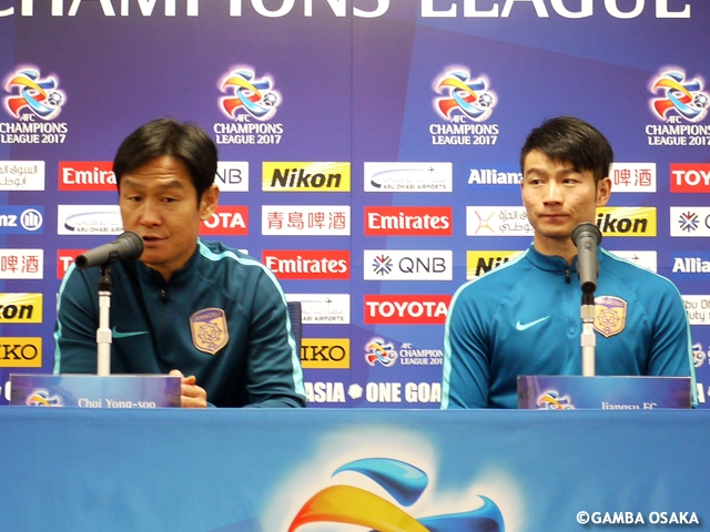 ガンバ大阪はアジアでも強豪のチーム。遠藤選手については前から知っていて、優れた選手であり、日本の選手の中でもレジェンド(と呼ばれる選手)だと思います。アデミウソン選手も江蘇蘇寧のアレックス・テイシェイラ選手と同じタイプの良い選手で、警戒しています。(チーム全員で)挑戦し、全力で勝ち点3を勝ち取って帰りたいと思います。