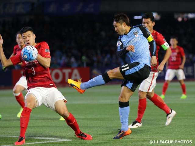 今大会初戦での両者の対戦では、川崎が前半早々にFW小林悠選手のゴールで先制したものの、前半半ばにオウンゴールで同点に追いつかれ、あと1点を奪えずに引き分けに終わりました。川崎はその後の3試合もすべて引き分けで、現在勝点4でグループ3位。2勝2分で首位の水原とは勝点4差、1勝3分で2位の広州恒大(中国)とは勝点2差です。