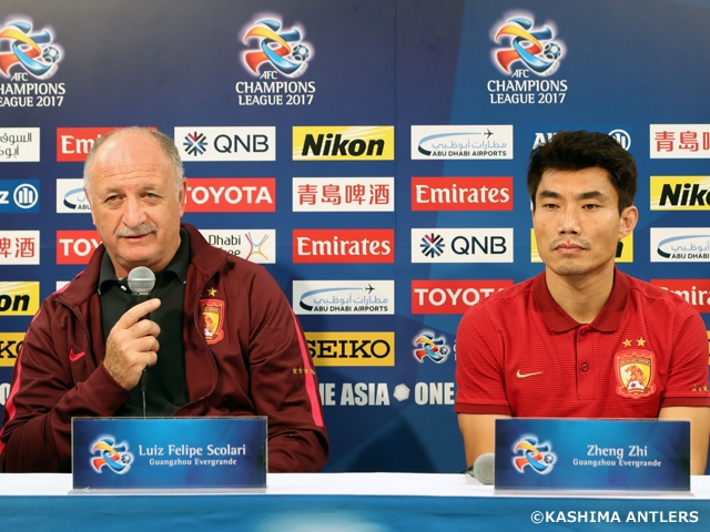 試合前日となる29日(月)には、両チームの公式記者会見が行われ、鹿島アントラーズからは石井正忠監督と山本脩人選手が、広州恒大からは元ブラジル代表監督のルイス・フェリペ・スコラーリ監督と主将のジョン・ジー選手が出席しました。