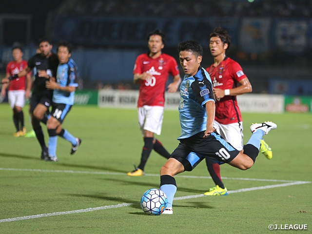 3週間前の8月23日(水)に川崎のホームで行われた第1戦では、川崎がFW小林悠選手の2得点などで3-1の勝利を収めました。浦和は、MF柏木陽介選手を試合開始前のウォームアップ中に負傷で失うというアクシデントもあり、シュート数でも川崎の18本に対して4本と苦戦を強いられましたが、2点ビハインドの76分にMF武藤雄樹選手がアウェイゴールを挙げて、1点を返しています。