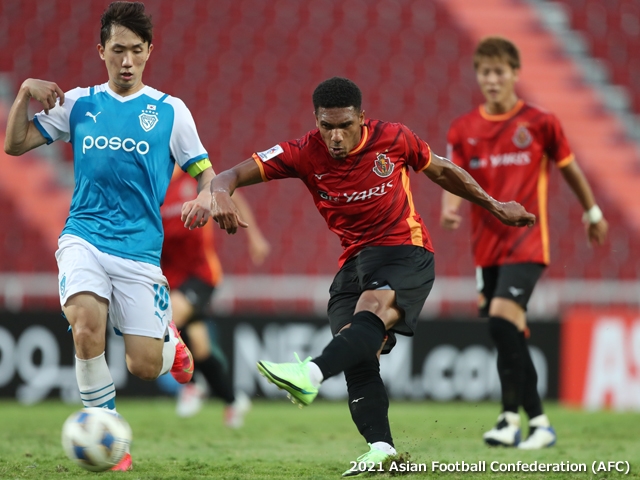 後半も選手交代を活かして試合の流れを維持。64分にFW山﨑凌吾選手のシュートで相手のハンドを誘ってPKを獲得。マテウス選手が決めて2-0としました。ハンドで警告を受けた浦項のシン・グアンフン選手は累積2枚目で退場となり、数的優位を得た名古屋は82分にマテウス選手が追加点を決めて勝利しました。