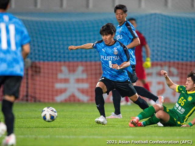 北京は、今月上旬にUAEでのFIFAワールドカップアジア2次予選に臨んだ中国代表選手が新型コロナウイルス感染防止対策で帰国後の隔離期間にあり、国内リーグの日程の都合もあって、他の中国勢と同様に若手主体のチーム編成で臨んでいます。序盤は勢いとスピードを活かして攻撃を試み、FWリー・ボシ選手が川崎ゴールに迫る場面を作りましたが、早々の2失点で後ろへシフト。その後は川崎が押し込む展開となりました。