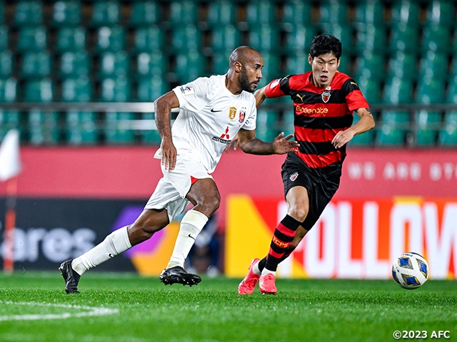 この結果、浦項は4戦全勝で勝ち点を12に伸ばし、1勝1分け2敗で2位の浦和との勝ち点を8差としてグループ1位突破を決めました。浦和は残り2試合での連勝で2位抜けの可能性に絞られ、他グループの結果次第という苦しい状況になりました。