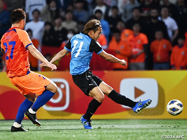 前半8分にはMFリー・ユアンイー選手が川崎DFにプレッシャーをかけてボールを奪うとペナルティエリアに切り込み、走り込んだクリサン選手にパス通して先制。さらに、25分には川崎のCKからカウンター攻撃に転じ、DFガオ・ジュンイー選手が決めて2-0として2戦合計で山東が勝ち越します。