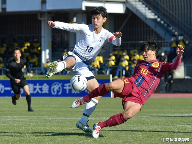 山梨学院と鹿島学園が激突した第2試合は、山梨学院の決定機で幕を開けました。4分に野田武瑠選手のスルーパスから、久保壮輝選手がGKと1対1の場面を迎えましたが、シュートは枠の外。鹿島学園もハイプレスをかわして、前線のエゼ・トベチク選手にボールを集めましたが、相手の堅守を崩せず前半を終えました。