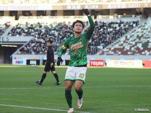 今日は相手の分析に偏らず、自分たちらしいサッカーをしようと意識しました。相手に合わせることなく、立ち上がりのセットプレーや流れの中から点数を決められたのが、今回の勝因です。(得点の際に喪章を空に捧げたのは)インターハイの初戦で長崎総科大附高校と対戦した時、ベンチに小嶺(忠敏)先生がいらっしゃった。高校サッカーを築いてきた方だったので、小嶺先生に向けた得点でした。