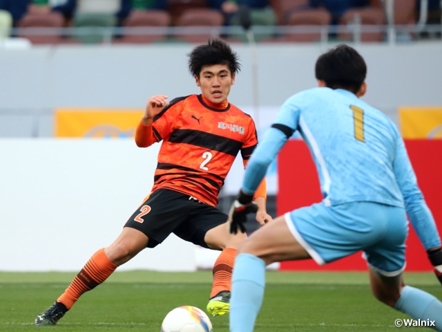 守備も「できるだけリスタートを与えず、シュートを打たせない。本来、我々がインターハイ(全国高等学校総合体育大会)やプレミアリーグ(高円宮杯 JFA U-18サッカープレミアリーグ)で志向してきたハイプレスのサッカーをしっかりやっていこうと試合に入った」(黒田監督)ことが奏功。37分に自陣のミスから、田島黎門選手に決定機を与えた場面も守護神の沼田晃季選手が落ち着いて対処し、失点を回避しました。