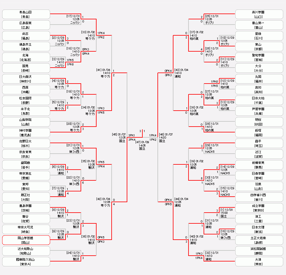 | 1月2日(月・祝) | 3回戦 | |