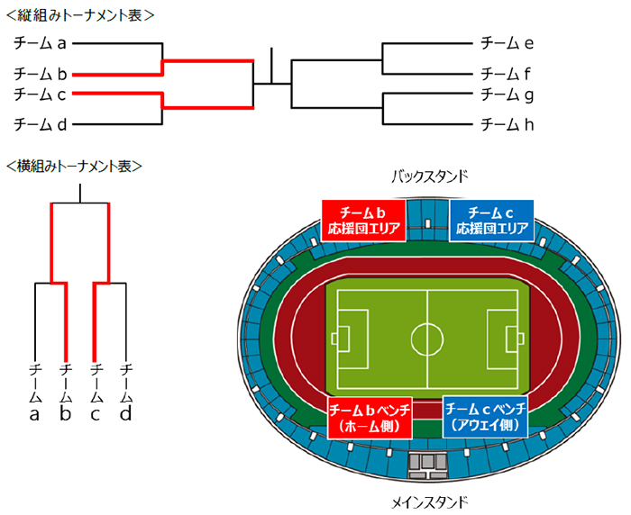 ホーム側→トーナメント表の上側または左側に位置するチーム(メインスタンドから見て左)