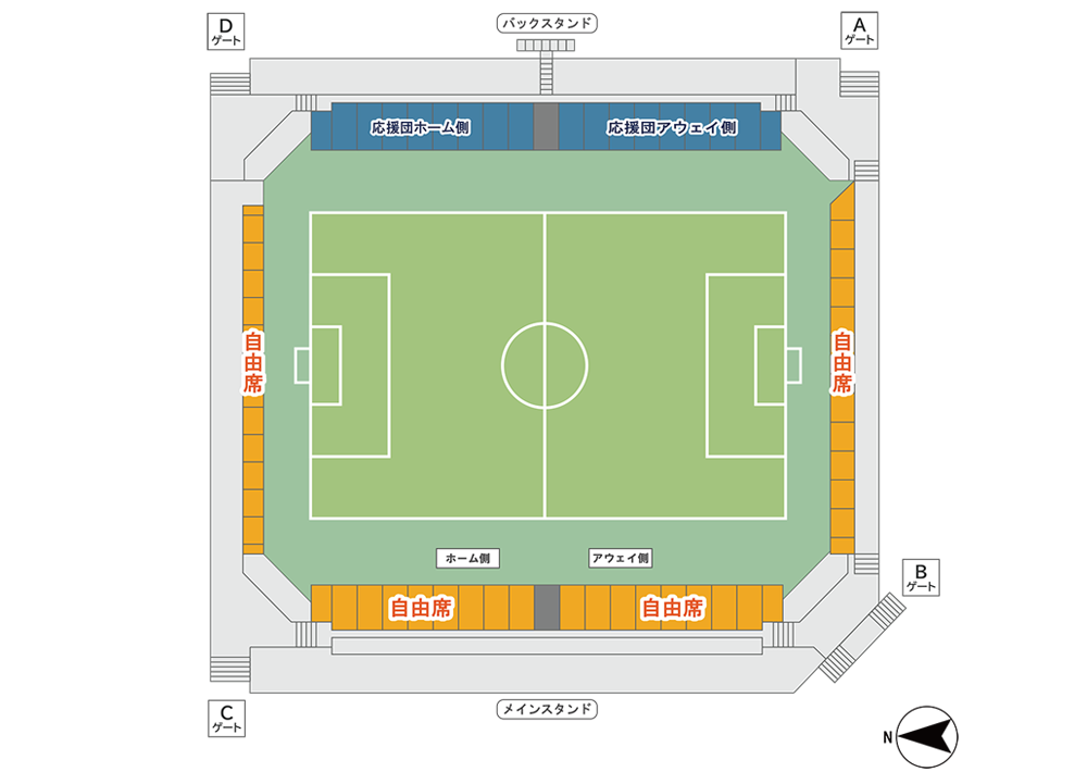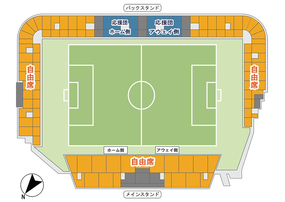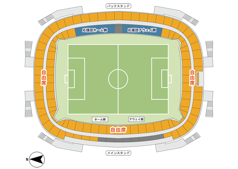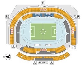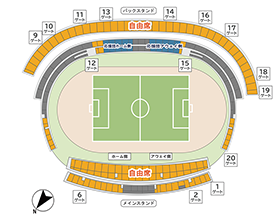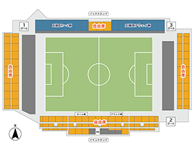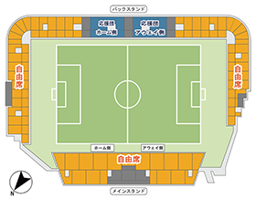 ※ SS指定席・SA指定席は、「北側」「中央」「南側」、S指定席・ゴール裏自由席・車いす席は「北側」「南側」からエリアを選択いただけます。