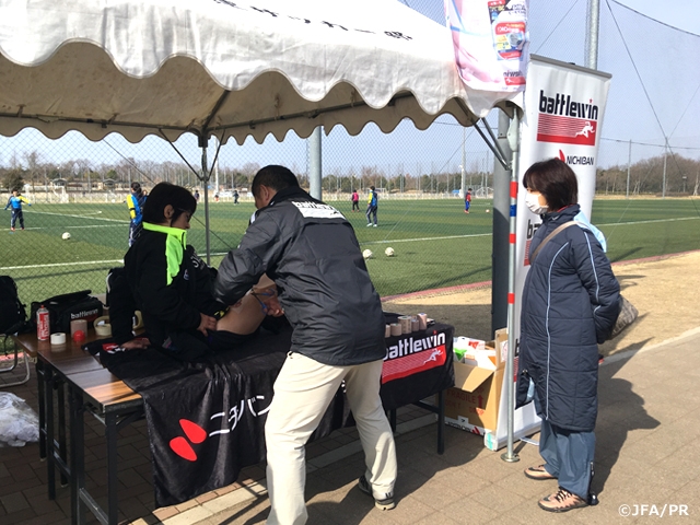 選手のパフォーマンス発揮のためにセルフテーピングブースでニチバンが選手サポート ~JFA Youth & Development Programme(JYD)~