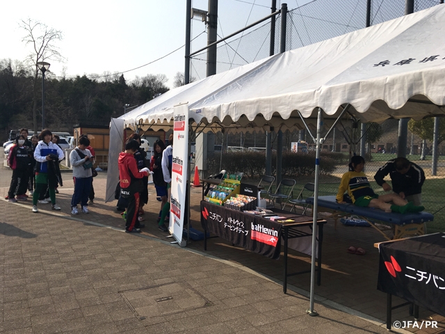 第28回全国レディースサッカー大会[レディース・エイト(40歳以上)オープン大会]が3月19日(土)~20日(月・祝)に兵庫県・三木総合防災公園で開催され、JFA Youth & Development Programme (JYD)オフィシャルサポーターであるニチバンのセルフテーピングサポートブースが設けられました。