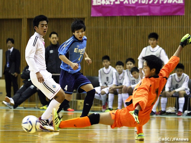 1月9日(土)、第21回全日本ユース(U-15)フットサル大会が、愛知県豊田市のスカイホール豊田で開幕。U-15年代のナンバーワンを目指し、予選を勝ち上がった16チームが大会に臨みました。初日は1次ラウンド2試合を行い、どの試合もスコアがめまぐるしく入れ替わる攻防を繰り広げる中、2チームが決勝ラウンドへの進出を決めています。