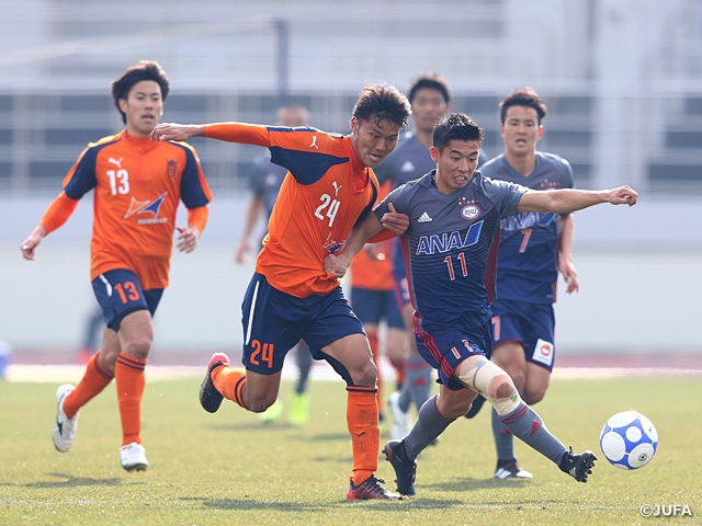 この結果、流通経済大学が3年ぶり2回目となる優勝を果たしました。最優秀選手に守田英正選手(流通経済大学)、ベストGKに新井栄聡選手(流通経済大学)、ベストDFに武藤友樹選手(法政大学)、ベストMFに新垣貴之選手、ベストFWに立花歩夢選手(ともに流通経済大学)が選ばれました。