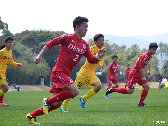 全日本選抜対関東選抜Bの5位・6位決定戦は、関東選抜Bの永戸勝也選手(法政大学)が開始早々の2分と16分に2点を先取しましたが、全日本選抜も前半終了間際に山口一真選手(阪南大学)が1点を返すと、後半に2得点を挙げて逆転に成功。全日本大学選抜が5位、関東選抜Bが6位となりました。