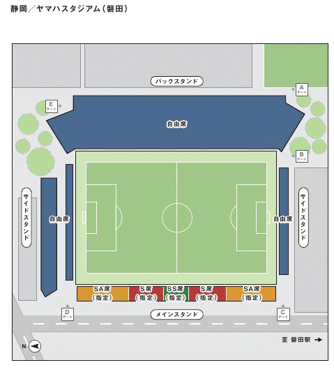 JR「磐田」駅北口より、バス「城之崎経由ヤマハ・スズキ」行きで「ヤマハ発動機」下車、徒歩5分