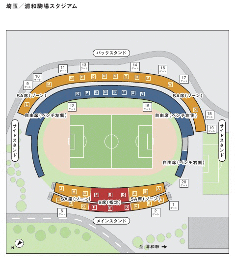 JR「浦和」駅東口より、国際興業バス(51系統グランド経由・北浦和駅東口行き)「駒場運動公園入口」下車、徒歩約2分