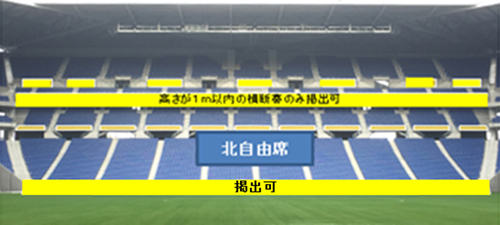 ※ 大旗を振っての応援は、両ゴール裏エリアの指定場所にてお願いします。