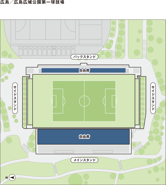 ■広島空港からリムジンバスにて「中筋」駅下車、アストラムライン「中筋」駅から「広域公園前」駅より、徒歩10分