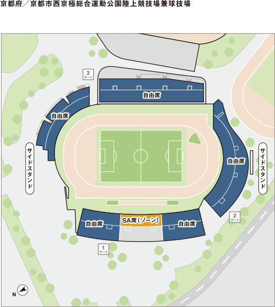 ■「京都」駅より、京阪京都交通21 / 21A系統、京都市バス73系統 「西京極運動公園前」下車、徒歩5分