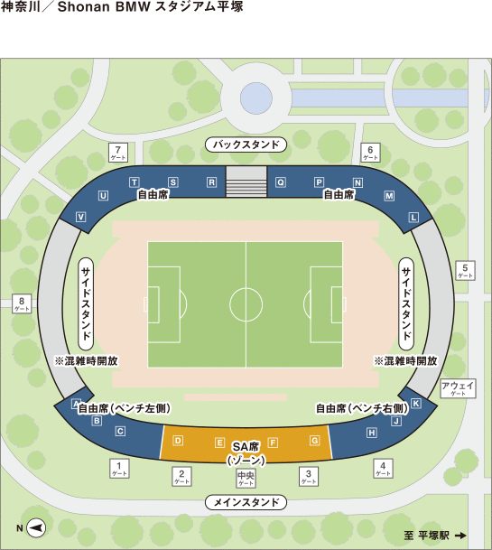 ■JR東海道本線「平塚」駅北口4番乗り場より、神奈川中央交通バスで「総合公園」下車、徒歩約3分