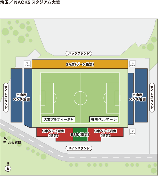 ■JR「大宮」駅東口より、国際興業バス「導守循環」行きで「大宮サッカー場前」下車、徒歩約1分