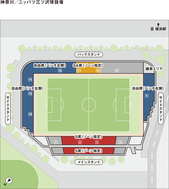 ■JR「横浜」駅西口より、市営バス、相鉄バスで「三ツ沢総合グランド入口」下車、徒歩約2分
