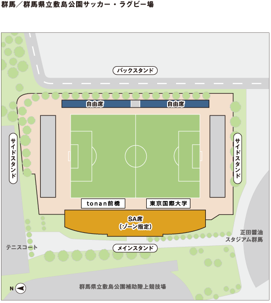 ■JR両毛線「前橋」駅から、関越交通バス「前橋」駅より、「総合スポーツセンター」行きで「敷島公園バスターミナル」または「競技場入り口」下車