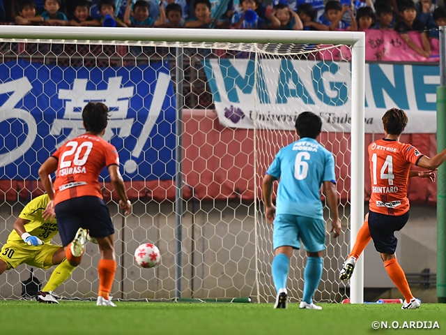 すると85分、後半は防戦一方となっていた大宮が反撃に出ます。交代出場のマテウス選手が左サイドからカットインし、一度は筑波大DFに阻まれるものの、そのクリアボールを拾った清水選手がオーバーヘッドでゴールへ突き刺して追加点。大宮がリードを2点に広げます。