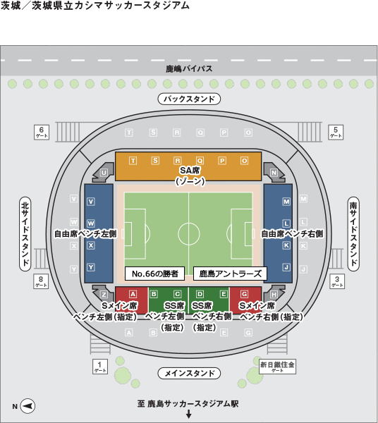 ■JR「東京」駅八重洲南口より、高速バス「鹿島神宮」行きで「カシマサッカースタジアム」下車