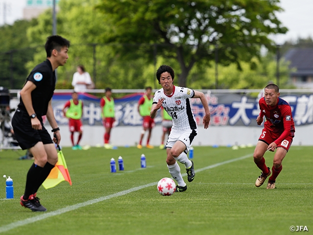 前半は、日ごろの練習で意識していることを体現できませんでした。ハーフタイムに監督から「自分たちが普段やっていることを発揮しないと勝てない」と厳しく言われ、「普段通り」をあらためて意識しました。終盤は厳しい時間もありましたが、何とか勝つことができました。僕たちはアマチュアですが、夢はJリーグの選手になること。今日の相手はJ3に所属しているので、その相手を倒せばプロに行けるという指標になります。勝ちにいった結果、次のステージに進むことができてうれしいです。